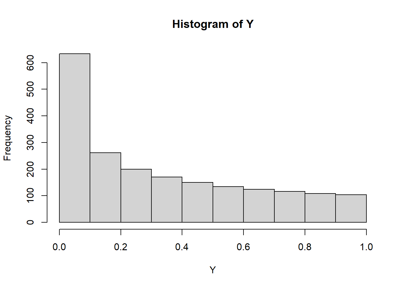 Y[i] <- sum(sample(0:1, size=X[i], replace=TRUE)) #sample x 0 or 1s and add them up - this counts the 1s