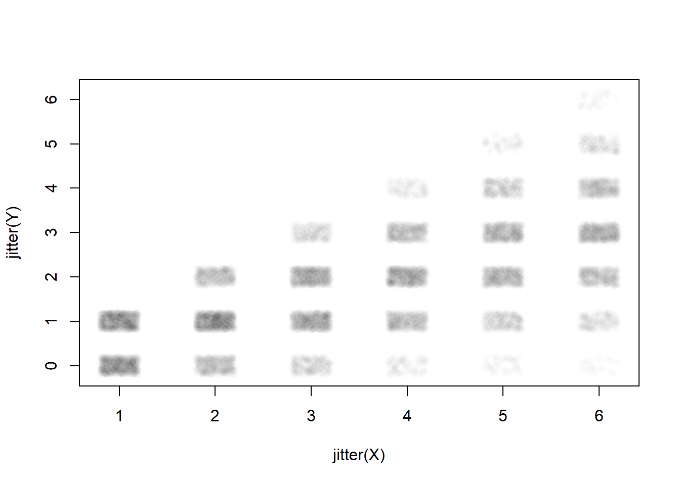 plot(jitter(Y)~jitter(X), col=rgb(0,0,0,.01), pch=16)