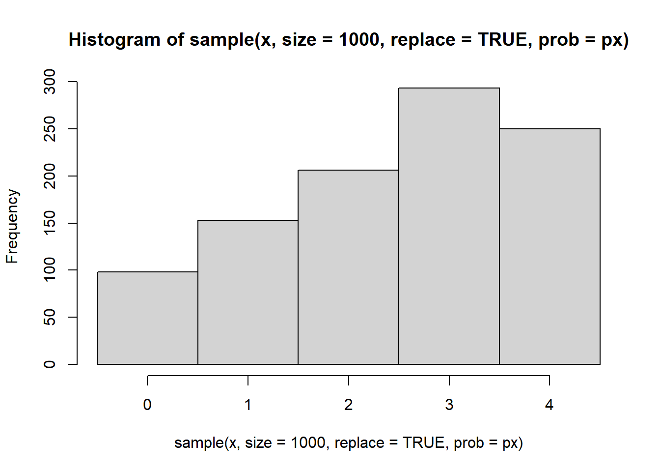 prob=px) #finish by providing the probability vector [1] 1 3 0 1 4 1 1 3 3 2