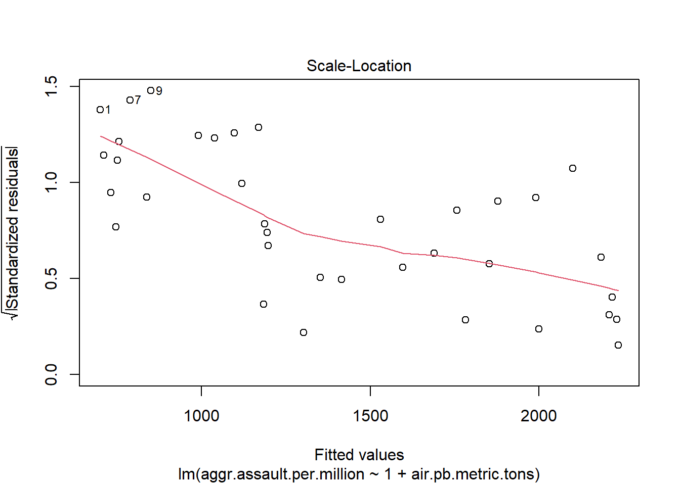 atlanta_lead_lm <- lm(aggr.assault.per.million ~ 1 + air.pb.metric.tons, data=atlanta_lead)