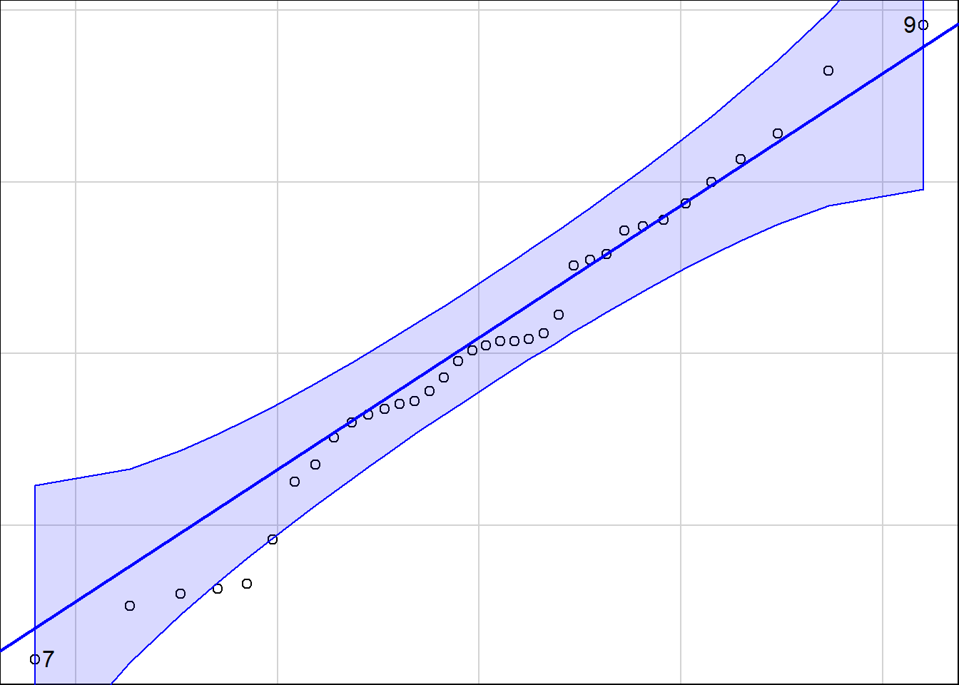 #also the qqPlot function in the car library adds a 95% tolerance band