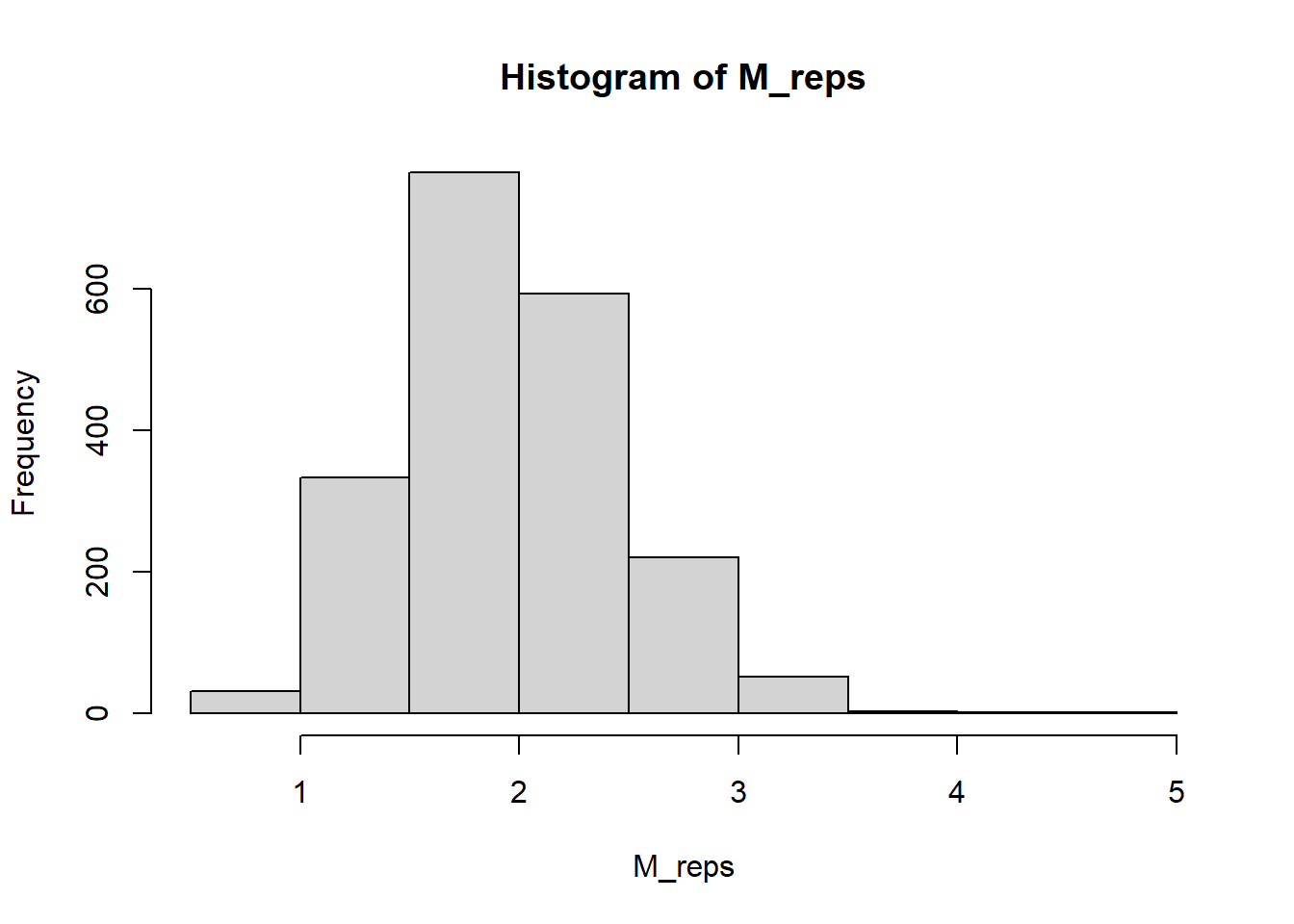 Yikes! That looks very different from the true distribution of \(M\) we saw above…
