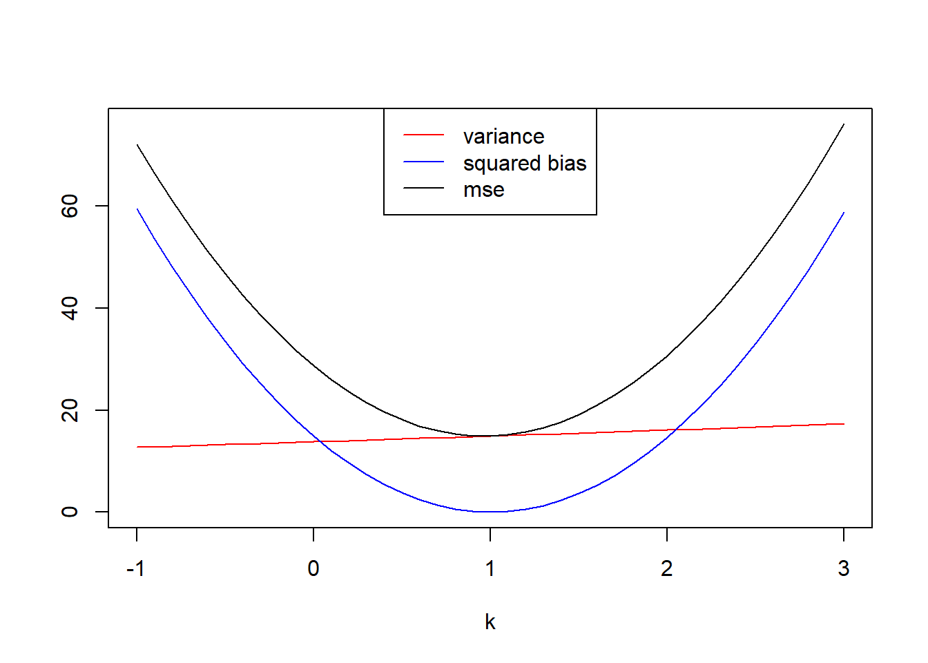 legend(x="top", legend=c("variance","squared bias","mse"), col=c("red","blue","black"), lty=1)