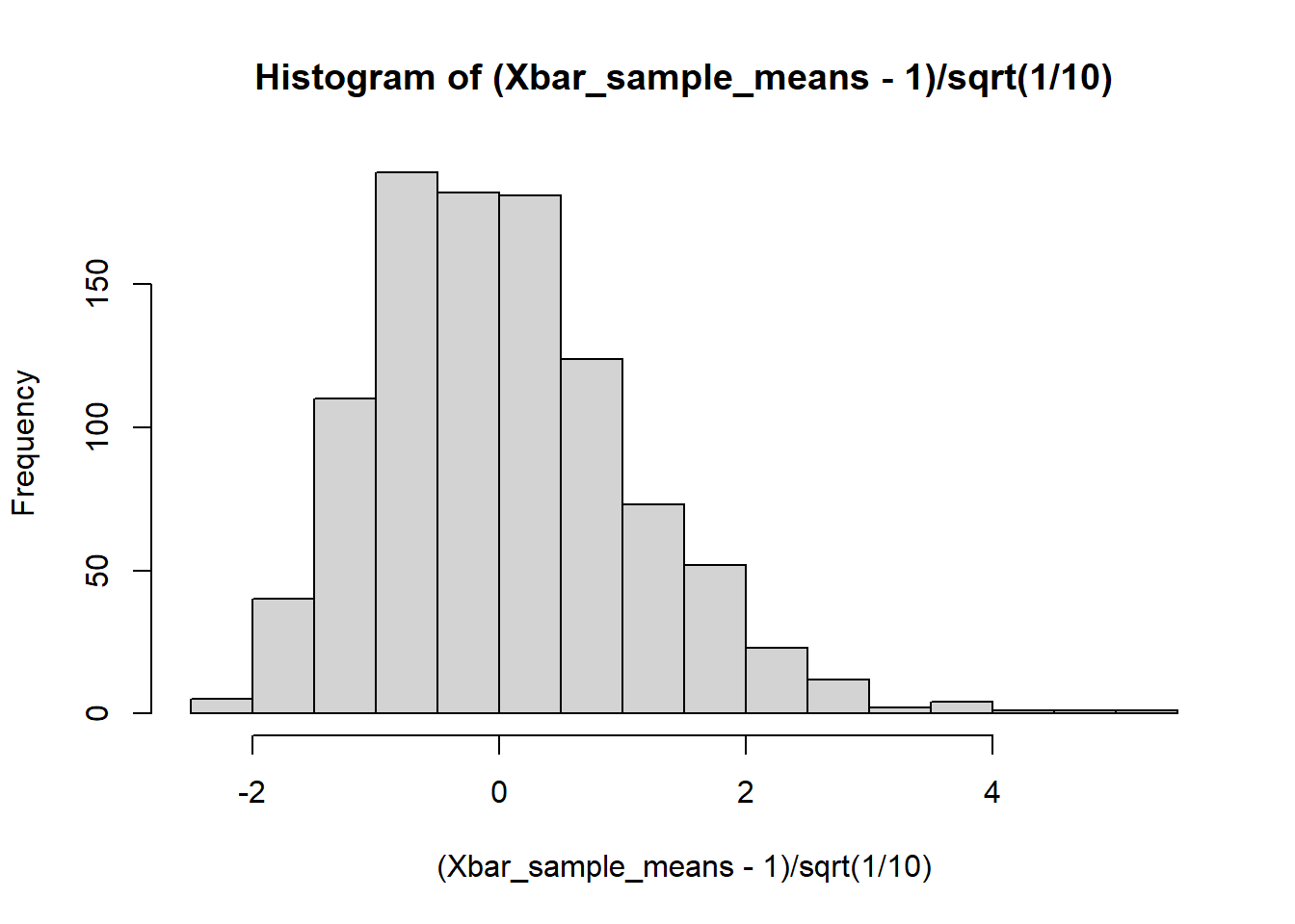 Xbar_sample_means[i] <- generate_sample_mean(10);