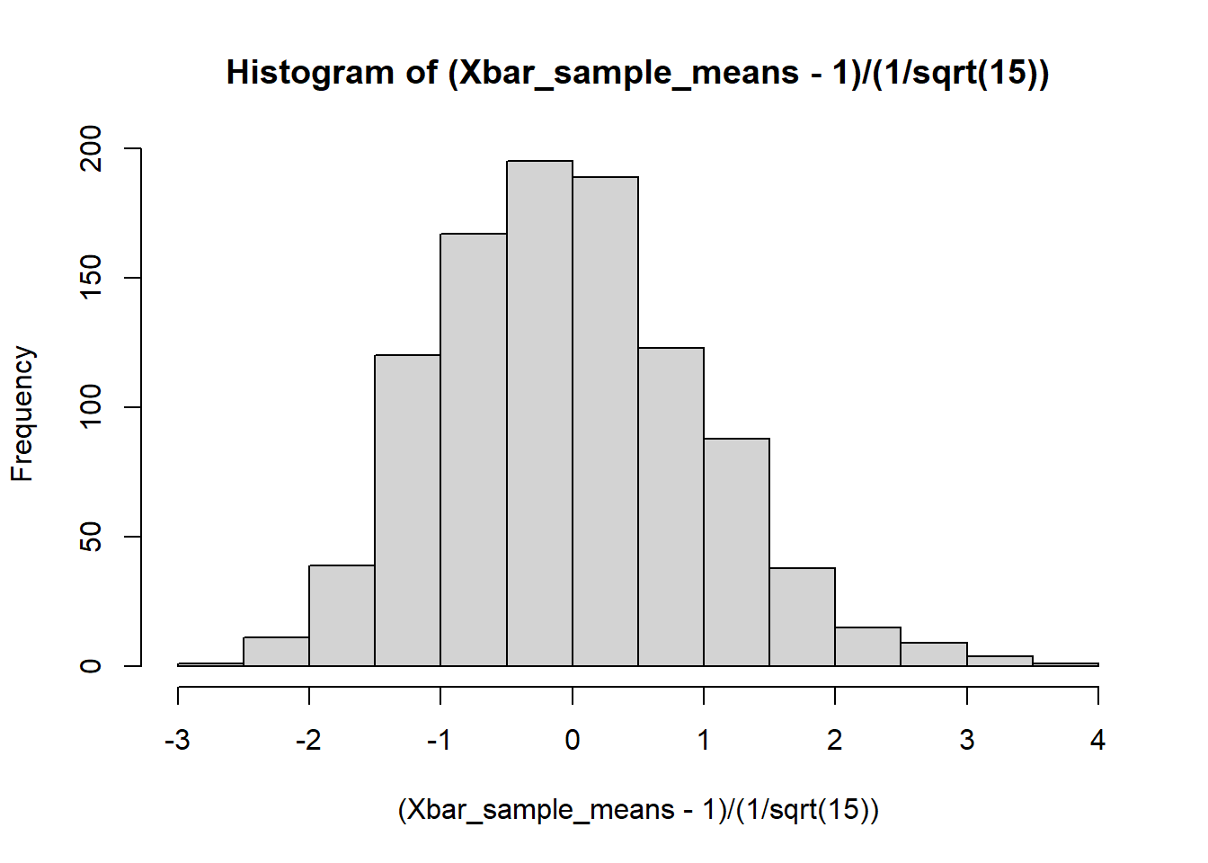 Xbar_sample_means[i] <- generate_sample_mean(15);