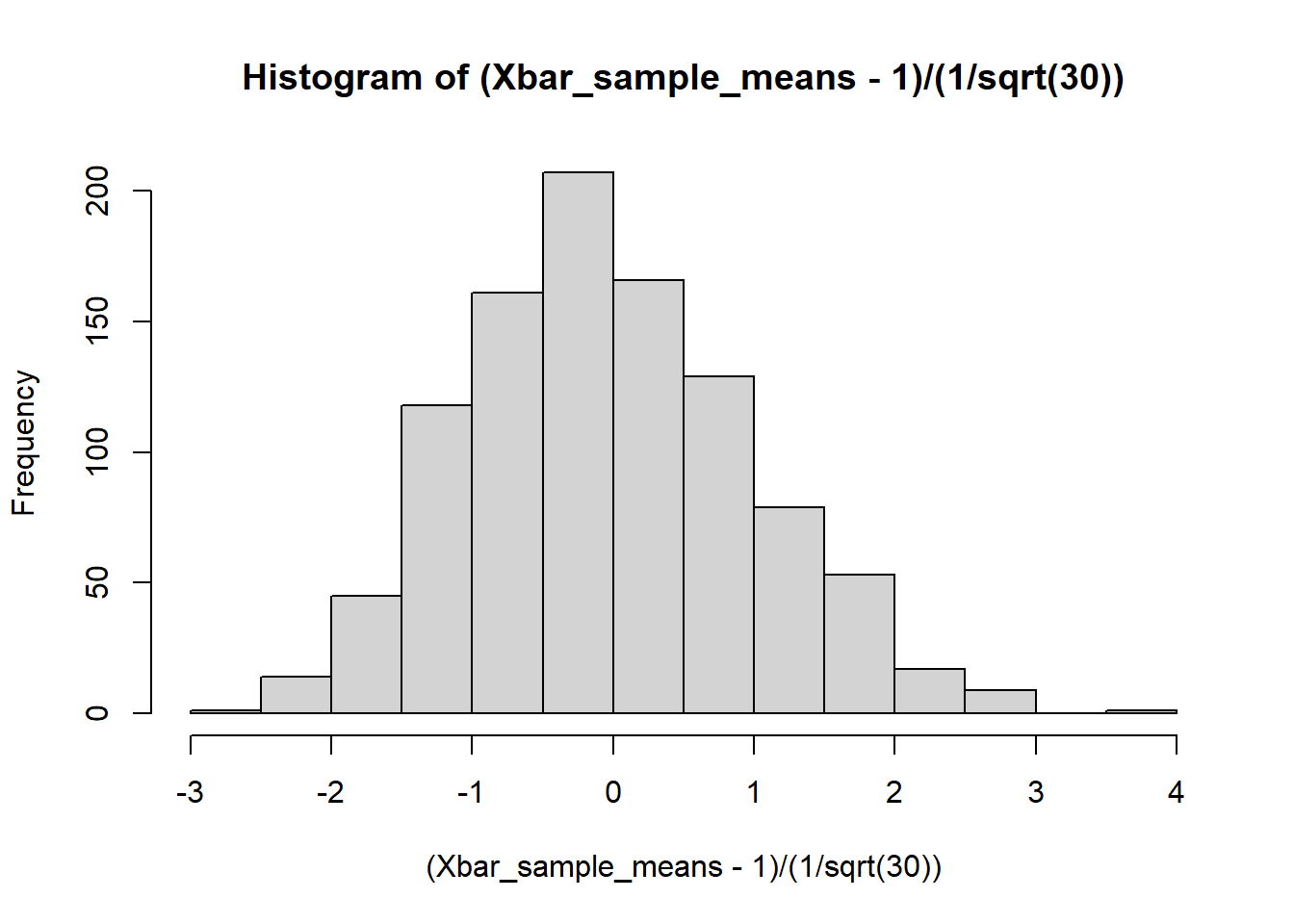 Xbar_sample_means[i] <- generate_sample_mean(30);
