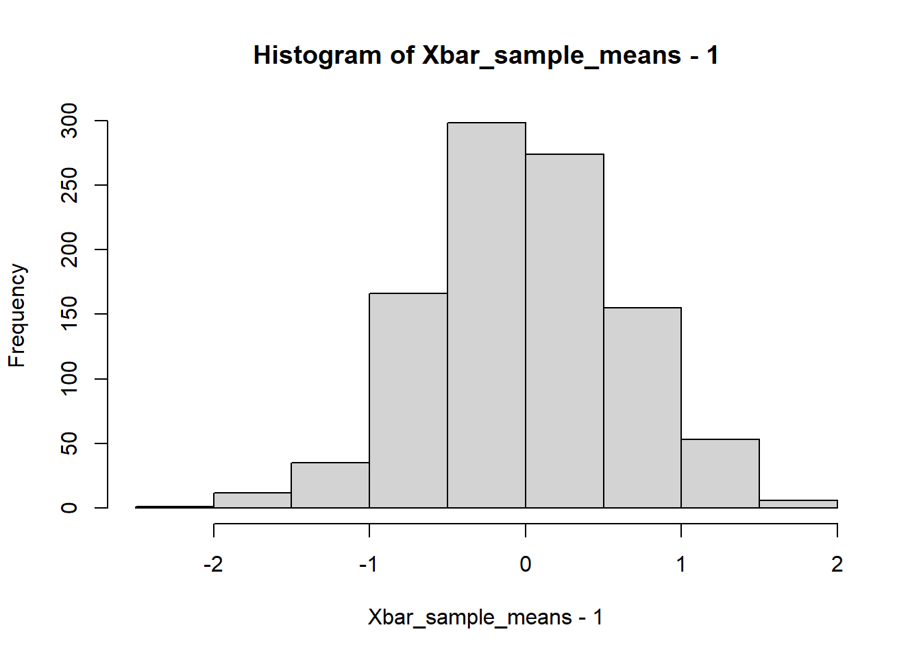 hist( Xbar_sample_means-1 );