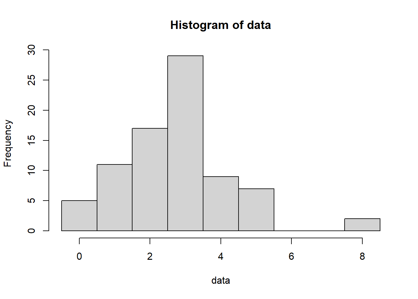 hist(data, breaks=seq(-.5,max(data)+.5,1)); # Always good to look at your data!