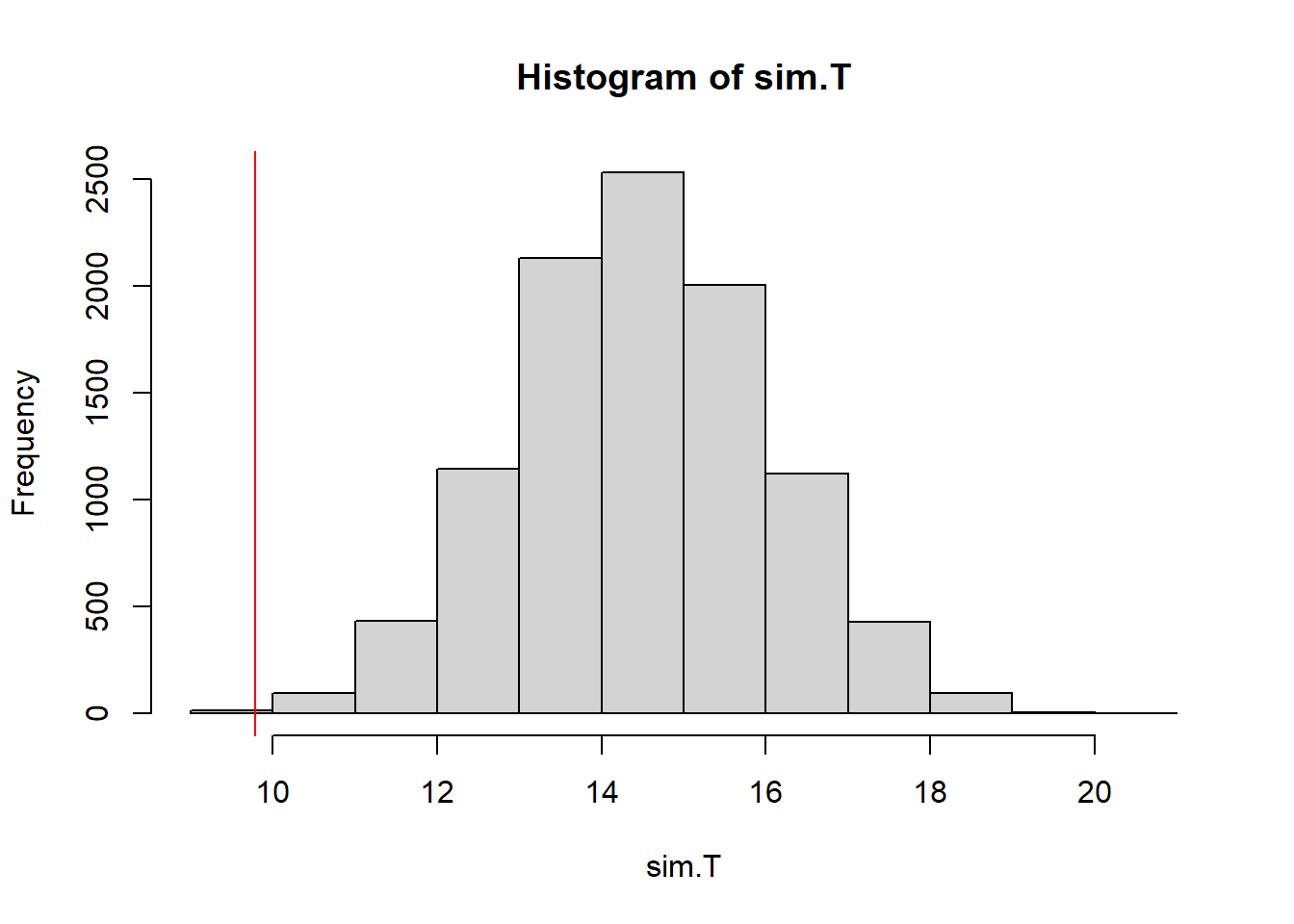 Develop and test an appropriate hypothesis for this problem using Monte Carlo