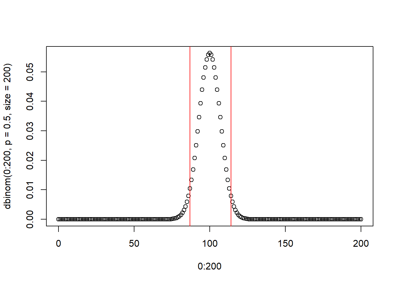 qbinom(0.95, size=200, prob=0.5)[1] 112