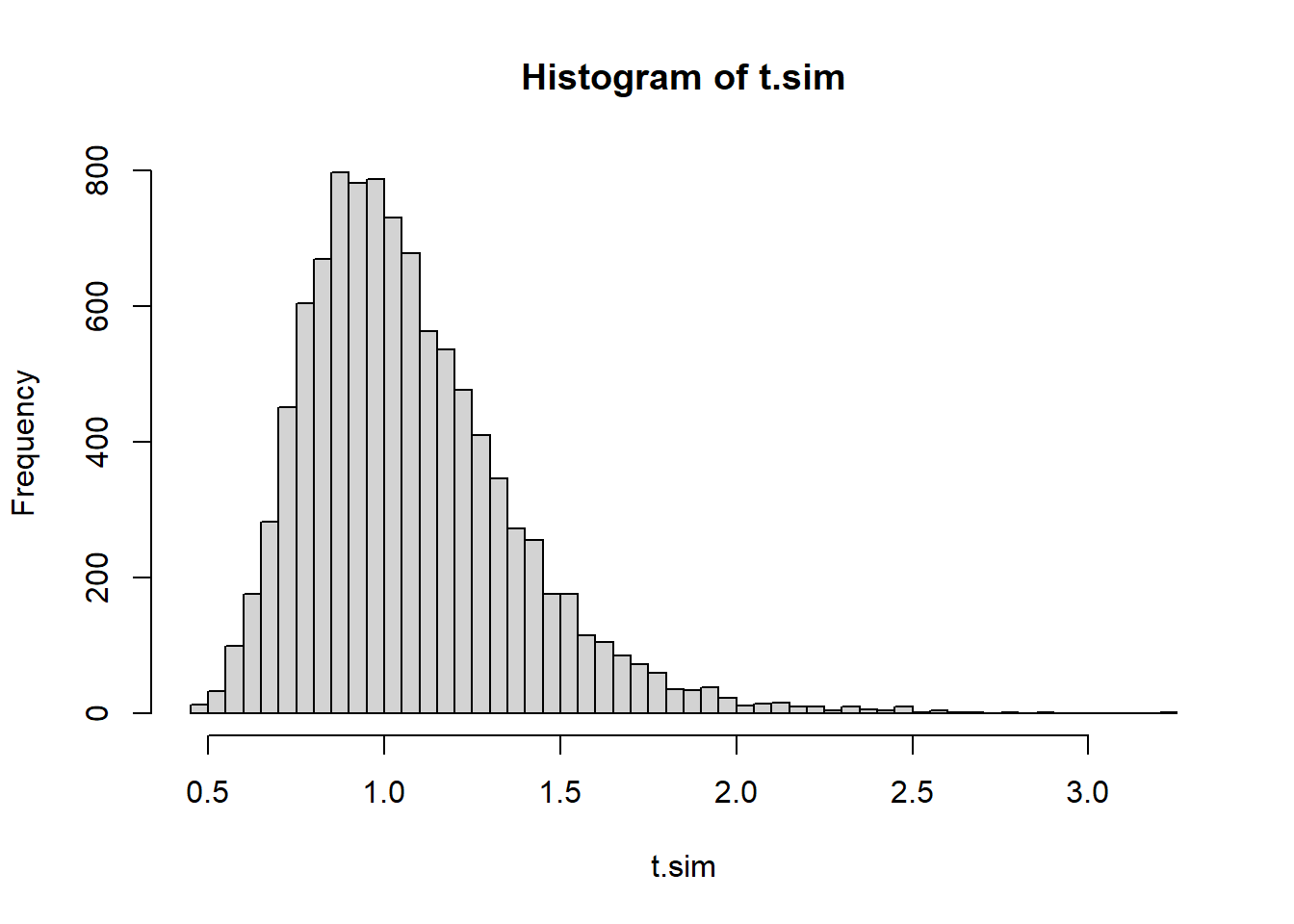 t.sim <- replicate(5000, mean(rexp(ns[i], rate=5)))
